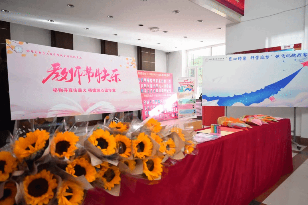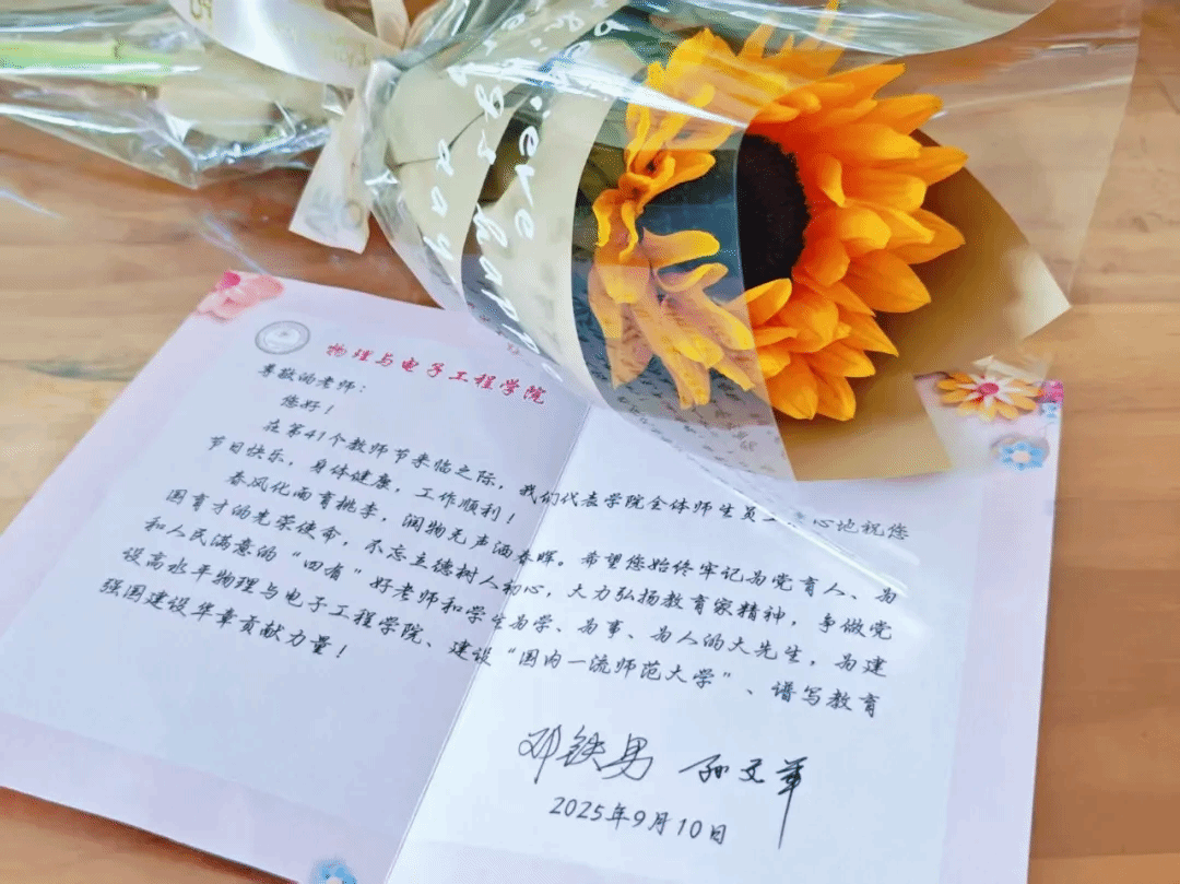 秉持教育热忱,践行育人担当。物理与电子工程学院全体教师将不断坚守初心,肩负立德树人的光荣使命,以实际行动为同学们诠释“学高为师,身正为范”的深刻内涵。站三尺讲台,育得桃李满园;怀赤诚之心,培育国之栋梁。在此,我们衷心感谢全院老师的辛勤付出,祝福全院老师节日快乐!