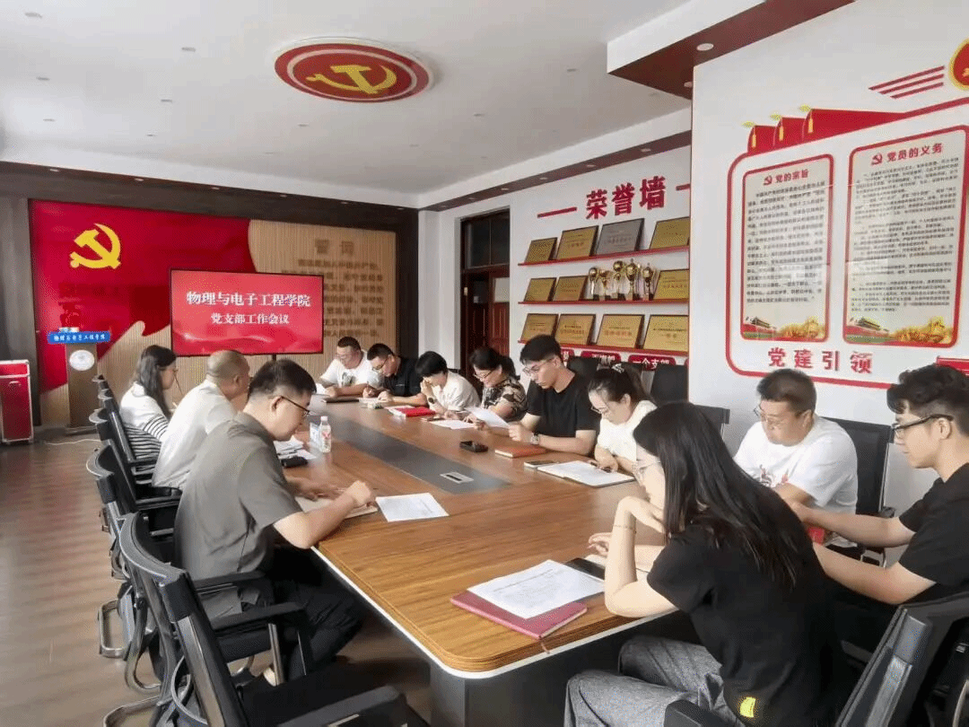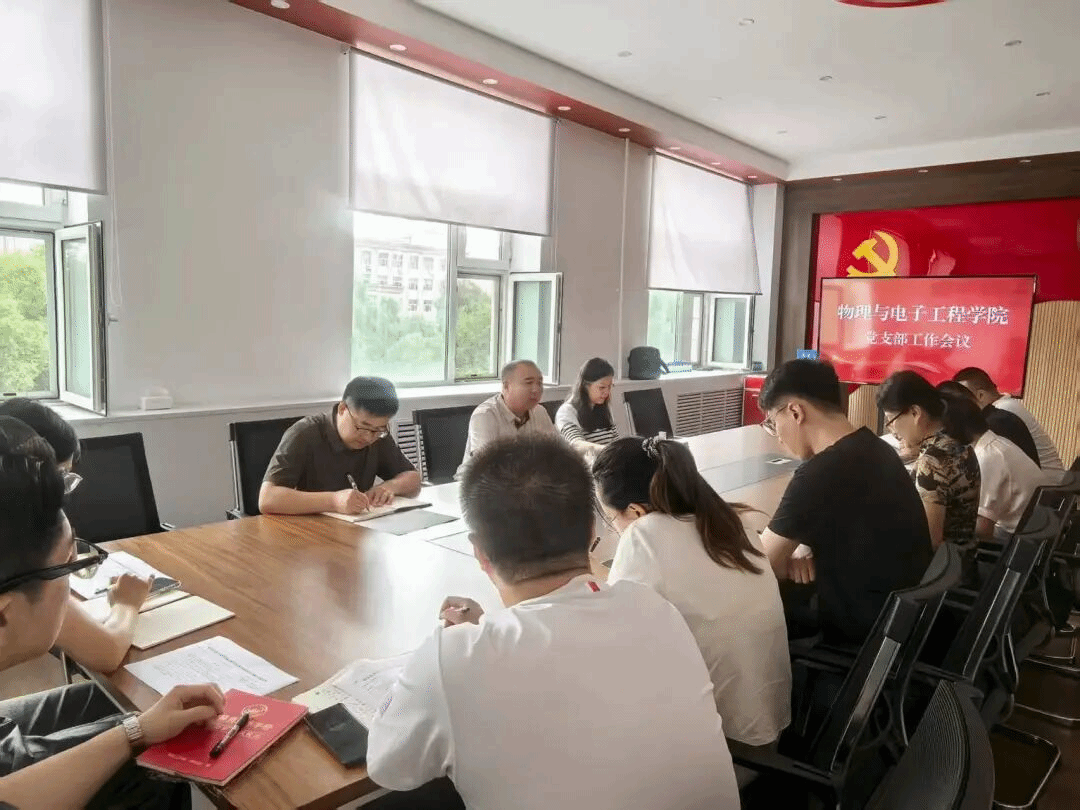 为进一步加强党的建设工作,推动深入贯彻中央八项规定精神学习教育常态化制度化,8月29日上午,物理与电子工程学院党支部工作会议在理工二号楼317会议室召开。学院党委书记邓铁男、党委副书记姜雪娥出席会议,全体党支部书记参加会议。会议由邓铁男主持。