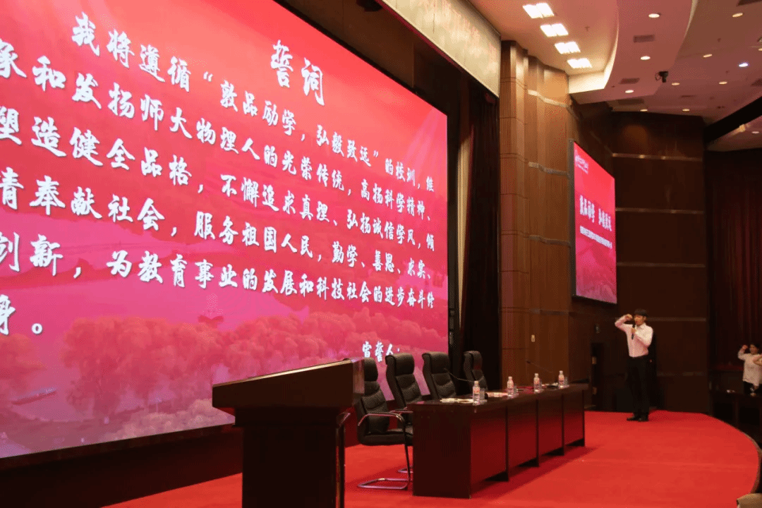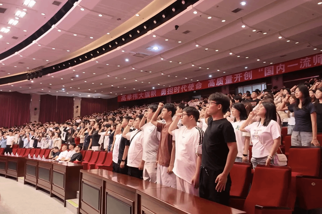 全体2025级新生在2023级物理学七班辛安琪的领誓下高举右拳、庄严宣誓,秉承“敦品励学,弘毅致远”的校训,努力成为有理想、敢担当、能吃苦、肯奋斗的师大物理人。