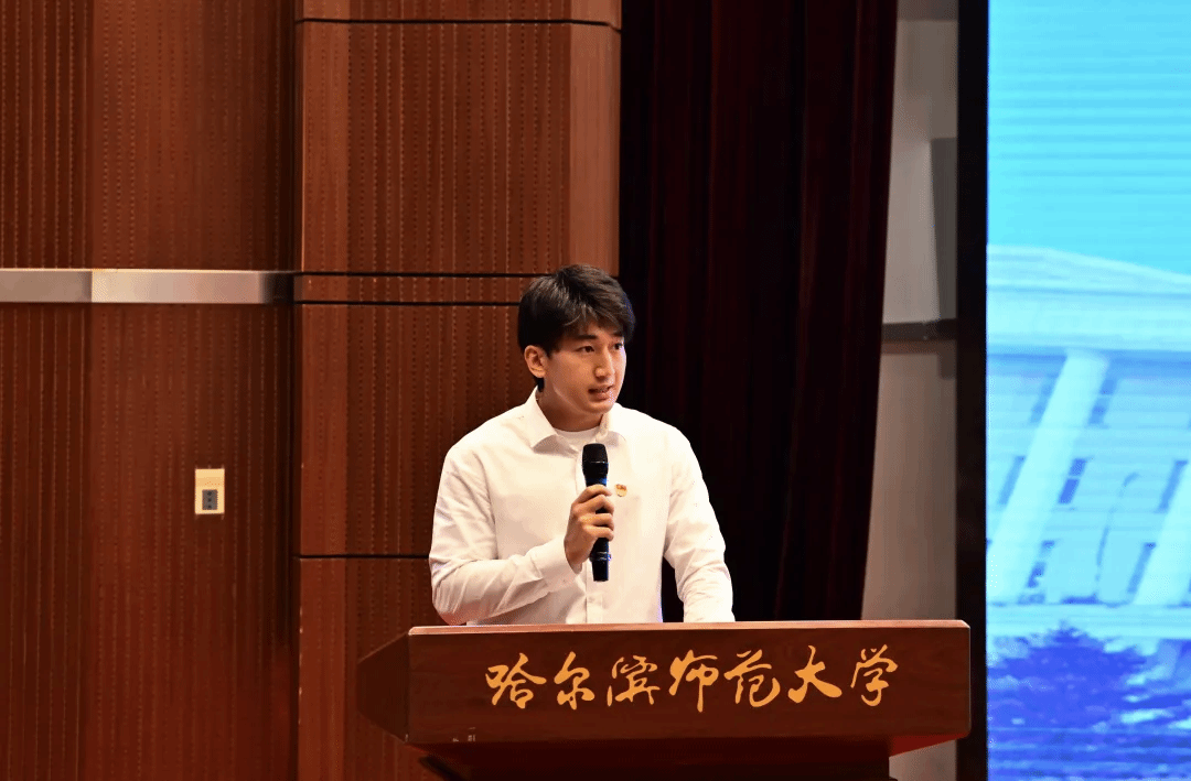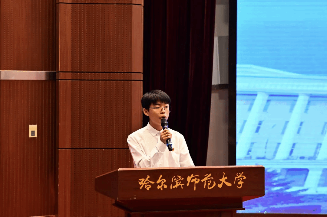 在校生代表、物理与电子工程学院团委副书记陈宇霆以“学长视角”传递温暖,结合自身的大学成长经历,希望同学们夯实基础,追求卓越、勇于创新,敢于突破、心系国家、担当使命,成为祖国需要的新时代青年。