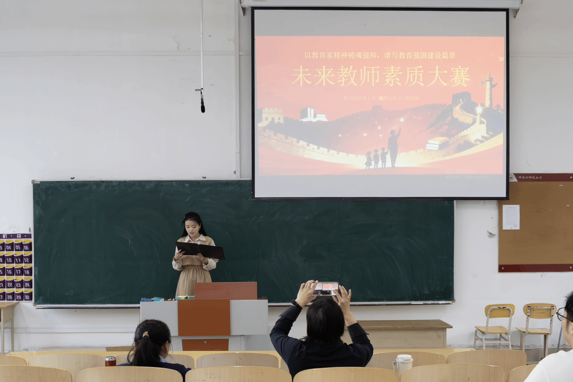 “杏坛薪火承古韵,教坛新声启华章”。在教育强国建设背景下,为锤炼师范生教学实践能力、弘扬教育家精神,11 月 12 日 13:30,物理与电子工程学院 “以教育家精神铸魂强师,谱写教育强国建设华章” 未来教师素质大赛在理工二号楼 311 教室举行。大赛获全院师范生积极响应,经班级推荐、学院初筛、专业复评多轮选拔,最终评选出20名获奖学生。比赛邀请孙宝东、姚秀伟两位老师担任本次大赛评委,从教学设计等维度评审,并结合实践提供指导,切实保障比赛竞技性与育人价值。
