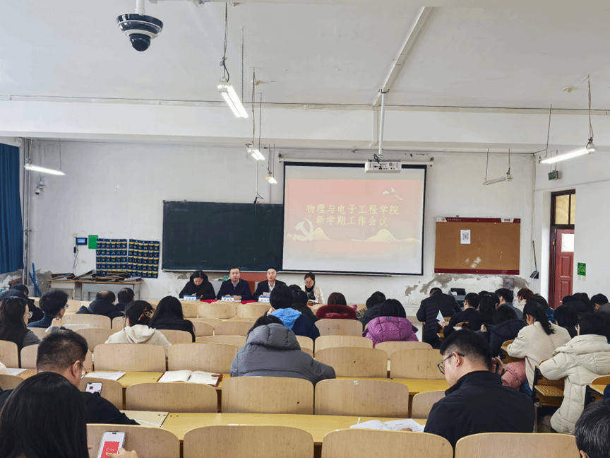 为贯彻落实学校2026年工作会议精神,全面统筹部署新学期工作,推动学院各项工作高质量发展,3月4日下午,物理与电子工程学院新学期工作会议在理工二号楼211室召开。学院党委书记邓铁男主持会议并讲话,学院领导班子成员、全体教职工参加会议。