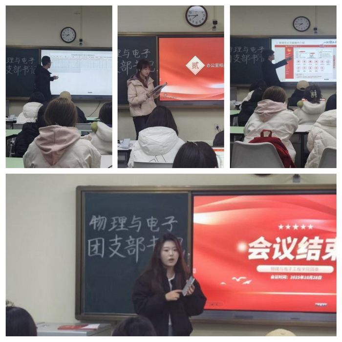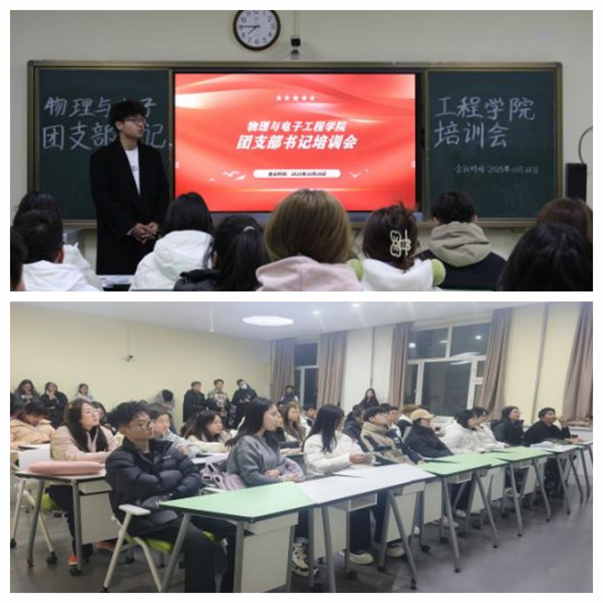 为深入学习贯彻习近平新时代中国特色社会主义思想,巩固学校共青团“五大提升行动”成效,以制度治团、作风强团夯实基层组织根基,10月28日晚,物理与电子工程学院团支部书记工作培训会在理工二号楼111教室召开。学院团委组织部、办公室及第二课堂负责同学担任主讲,学院2024级、2025级本科生团支部书记参加本次培训。