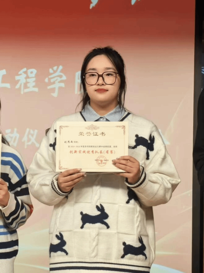 每一份成就都源于不懈探索,每一次突破都始于勇敢尝试。刘思雨同学以积极进取的姿态投身各类实践,用踏实笃行的努力书写青春答卷。更以她在学生工作、创新竞赛中的优异表现,为我们诠释了“敢于尝试、勇于担当”的榜样力量。愿她的故事能化作一束光,让大家在逐梦途中找准方向、笃定前行,于各自的赛道上绽放光彩!